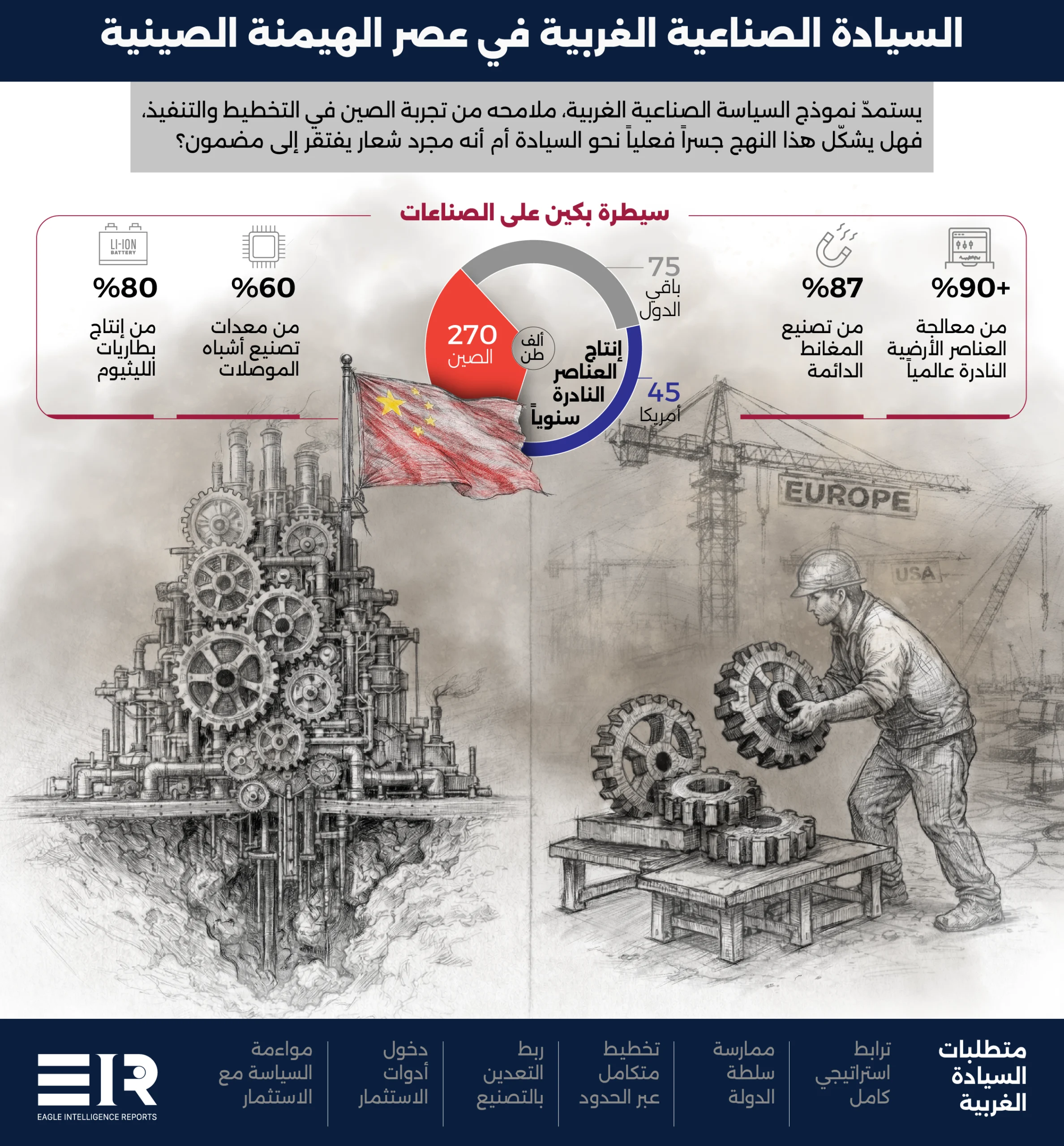 اتجهت الحكومات الغربية إلى تبنّي سياسات كانت، حتى قبل عقد واحد فقط، تُعتبر غير تقليدية وجريئة، وذلك لمواجهة العمق الصناعي الاستراتيجي الذي حققته بكين، وإعادة تأكيد قدرة الغرب على المنافسة في القطاعات الحيوية، لقراءة التحليل كاملاً اضغط هنا.