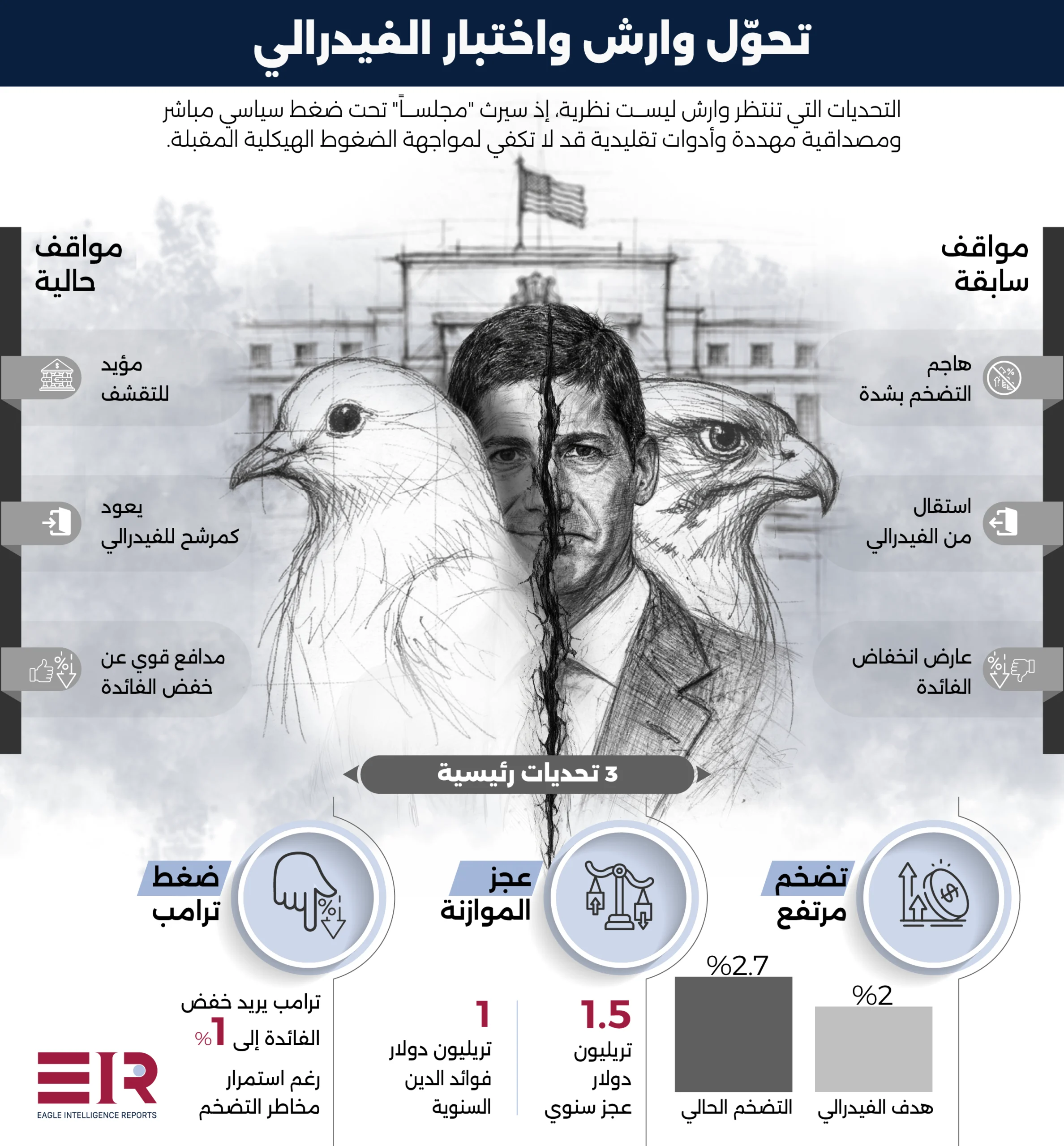 تحدي وارش لرئاسة الفيدرالي بين عجز اقتصادي وضغط ترامب