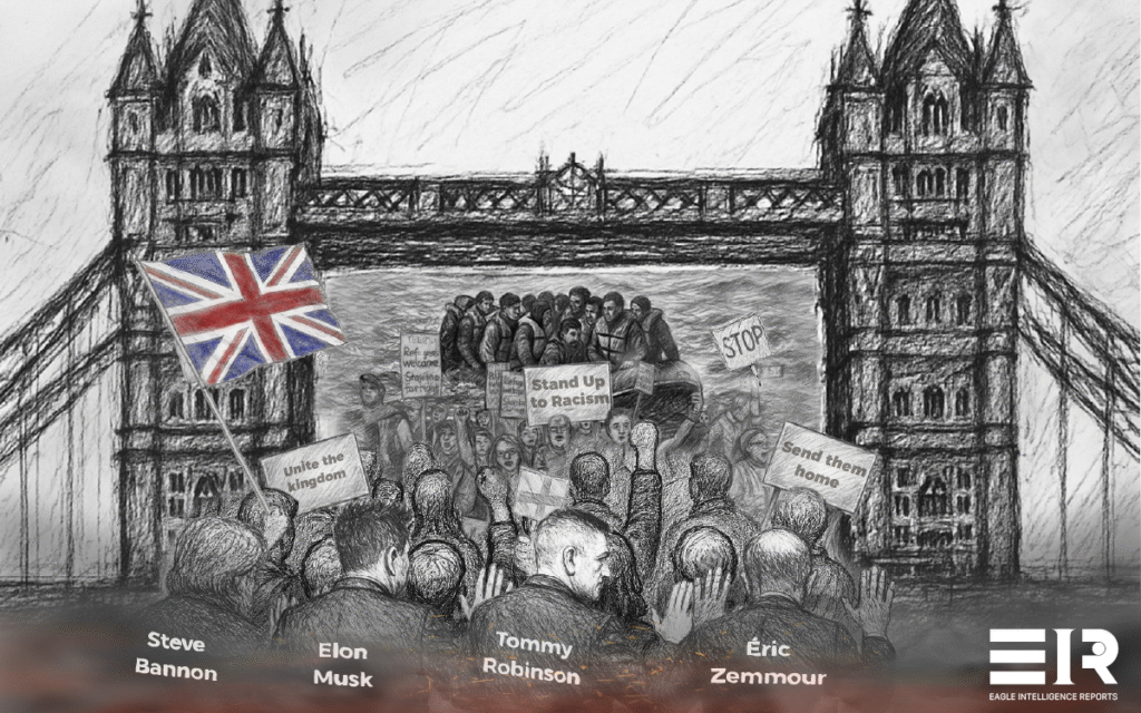 بالتالي، لم تندلع مظاهرة سبتمبر المذكورة أعلاه بشكل عفوي، بل كانت تتويجاً لعام من المواجهات المحلية الأصغر حجماً مثل: تجمعات غاضبة أمام الفنادق، ولافتات أمام مراكز اللجوء، وشعارات تردد في ساحات المدن الرئيسية، حيث وفرت هذا الأحداث بيئة خصبة لهذه الحركات لتنمو بشكل أسرع، من حيث الأسماء والشبكات والعبارات التي تعكس غضب الشارع، ومع تجمع أكثر من 100 ألف شخص في وسط لندن، كان كل شيء للمظاهرة معد سلفاً، أما المتظاهرون المضادون فلم يتجاوز عددهم سوى بضعة آلاف، وكانت الشرطة منتشرة على طول شارع “وايت هول”؛ ما أسفر عن إصابة 26 ضابطاً واعتقال 25 شخصاً.