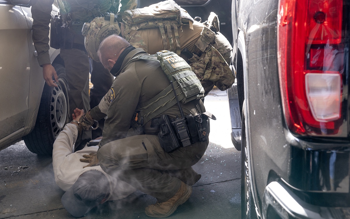 في شيكاغو، اعترض السكان على وجود عملاء وكالة الهجرة والجمارك الأمريكية (ICE) المرتدين للأقنعة، حيث أرسلت إدارة ترامب فرق ICE مرتدية الأقنعة إلى أماكن عمل ومنازل المهاجرين خلال حملات الاعتقال والترحيل، وهو ما دفع الجيران والمواطنين إلى الاحتجاج ضد هذه الحملات.